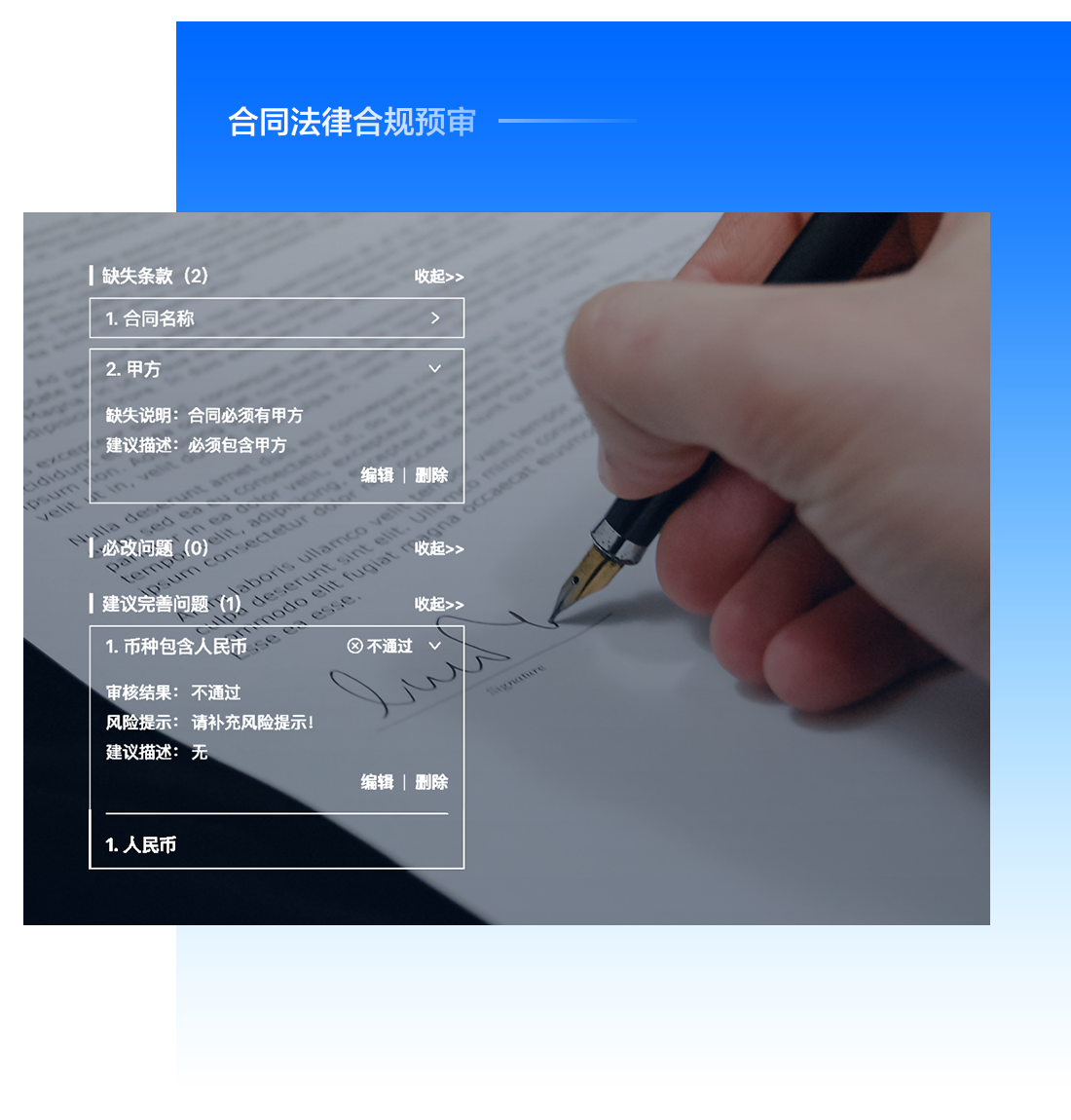 法务知识 结合自然语言处理中的命名实体识别、实体消歧、语义推理等技术,实现对合同法务合规的智能预审